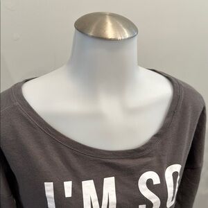 Dark gray long sleeve tee with bold white text. Comfortable and stylish.