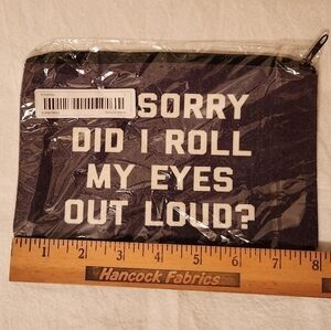 NEW "I'm Sorry Did I Roll My Eyes Out Loud?" Make Up Cosmetic Bag Zipper Pouch. Only removed from original packaging for photos.