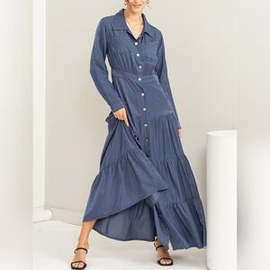 I'm Taken ⭐️Hyfve Blue Button Down Maxi Dress sz L 8-10