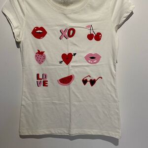 Wound Up Women's Cream Love Theme Short Sleeve Graphic T-Shirt Large NWT