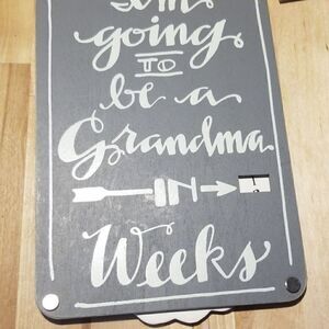 This cute sign counts down the weeks until you are a grandma. Great way to announce fkr the holidays. New with tags.
