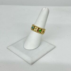 Ima Gold-Tone Multi-Stone Band Ring - Brass with Colorful Gem Accents