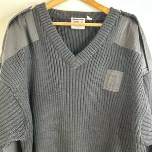 Image First Commando Sweater Mens 7XL Black Wool V Neck Military Patches Hunting