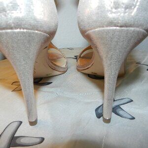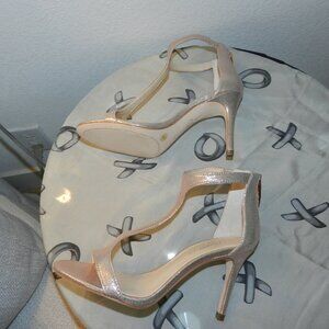 Imagine Vince Camuto Phoebe T-Strap Rose Gold Shimmer Satin Heels Size 6