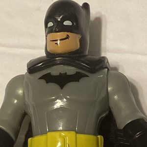 This Imaginext DC Batman action figure is a must-have for any fan of the DC Universe franchise. Standing at 3 inches tall, this smiling Gray Suit Batman is made of durable plastic with a black cape.