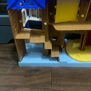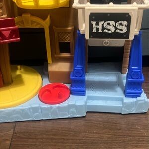 Dive into a world of adventure with this vibrant playset featuring red and blue structures. Designed for imaginative play, this set includes a firehouse-like building and an open-roofed structure, perfect for creating exciting scenarios.