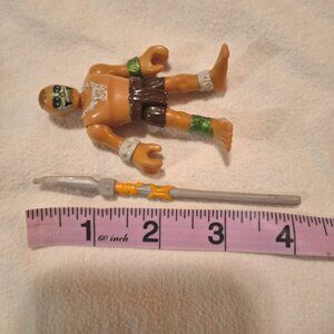 Unleash your inner tribe leader with this quirky blast from the past! This Imaginext figure is ready for adventures with its spear, tribal flair, and wild masks - perfect for adding a tribal vibe to playtime or a display shelf. Who knew warriors could look this cool?