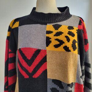 Imagio Unisex Tri-color Block Fleece High Collar Sweater (Size: Medium)