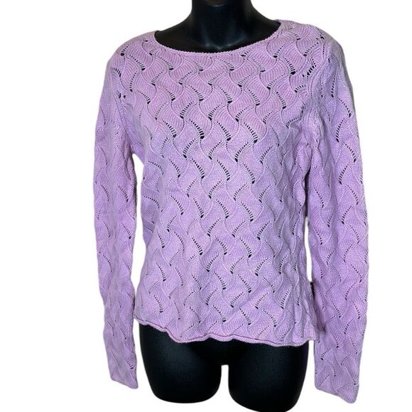 I.magnin vintage open wavy 3D knit 2 ply cashmere sweater small pointelle