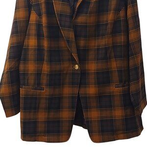 Iman: 2pc Plaid Pantsuit, Size 2X, Brunt Orange, Brown, Black