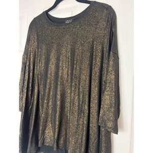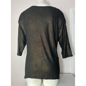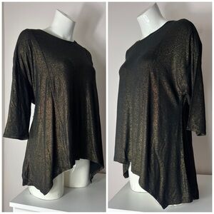 Iman Black Gold Metallic Glitter Sparkle Blouse Asymmetric Hem Top Size Small