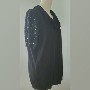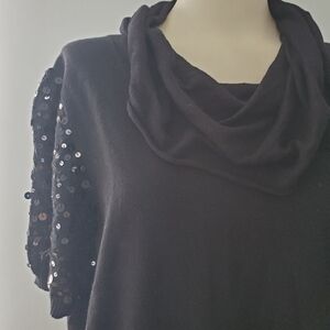 Iman Black Tunic Sweater Short Sleeve Cowl Neck