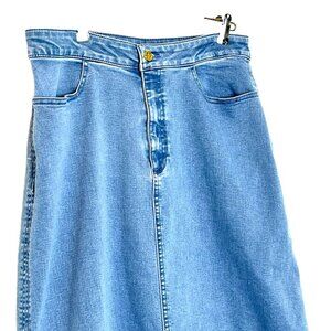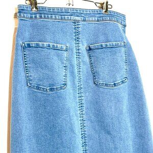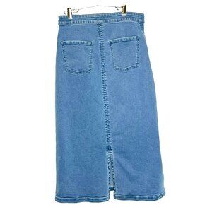 Iman Denim Midi Skirt sz 10 Stretch Pockets Slit Y2K Modest