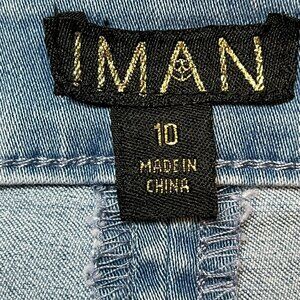 This Iman denim midi skirt is in excellent pre-owned condition.