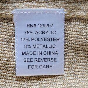 This gold collarless tank top from Iman has metallic gold threads to make it shimmer. Content: 75% acrylic, 17% polyester, 8% metallic. Care: machine wash, dry flat.