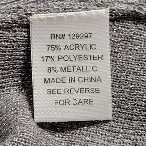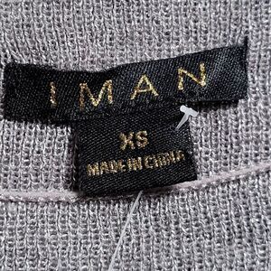 This gray collarless tank top from Iman has metallic gold threads to make it shimmer. Content: 75% acrylic, 17% polyester, 8% metallic. Care: machine wash, dry flat.