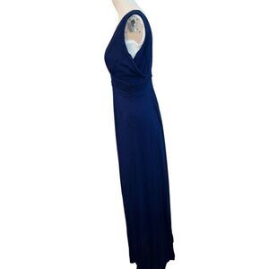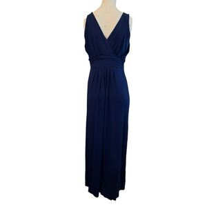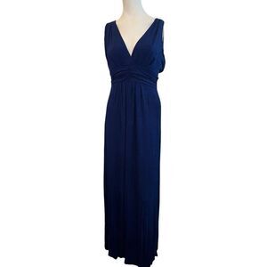 Iman Medium Maxi Long Navy Blue Sleeveless Dress V Neck Elastic Waist Pleated