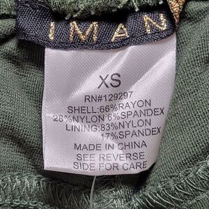 These olive green leggings from Iman have golden zippers at the ankles. Content: shell 66% rayon, 28% nylon, 6% spandex; lining 83% nylon, 17% spandex. Care: machine wash, dry flat.