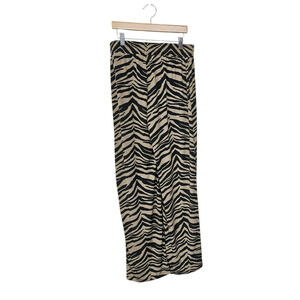 Iman Palazzo Pants Pull-On Slinky Zebra Print Wide Lined Boho Office Mob Wife