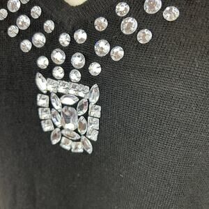 Iman Rhinestone Sweater Medium Black Cashmere Blend Boho Glam Holiday Party