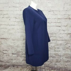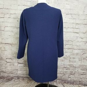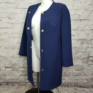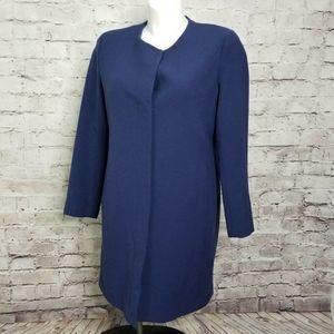 Iman Size L Navy Long Sport Coat Jacket Career Casual Collarless 4 Snap Buttons