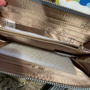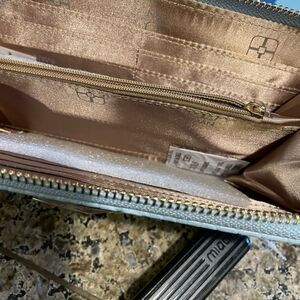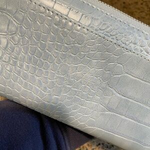 So cute! Both new! A few marks from being stored with other bags but hardly noticeable! The Iman wallet is sky blue color. The Stella and Max makeup bag is really nice! Great to take on vacations!