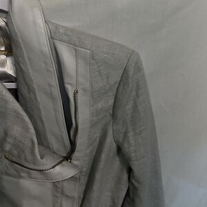 Iman Women’s Dressy Jacket Size Medium Gray Leather / Linen Going Out Party Fun