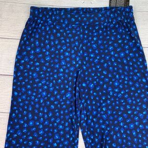 Blue print palazzo style pants. Elastic waistband. Stretchy fabric. Wide leg.