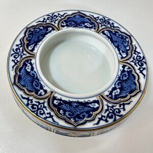 Imari Hand Painted Japanese Porcelain Ashtray Blue/White/Gold Phoenix Beautiful