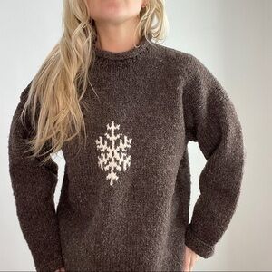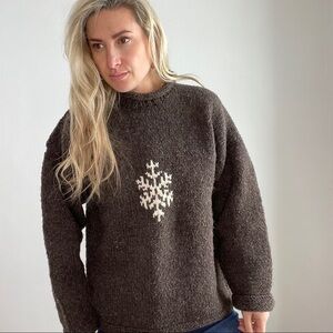 Imbabura Grey / slight brownish & White 100% Wool Mock Neck Sweater. Bundle up and stay cozy!