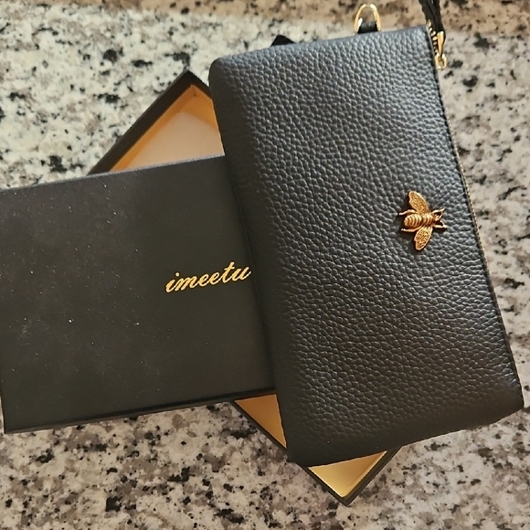 BRAND NEW!!!!! Imeetu Wallet Black with golden bronze bee