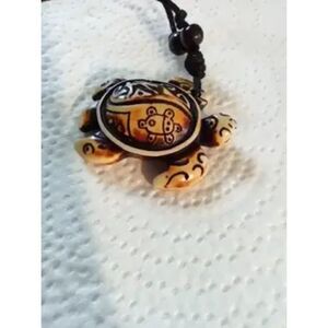 The turtle pendant is beautifully carved from imitation yak bone, making it a one-of-a-kind piece.