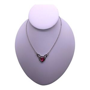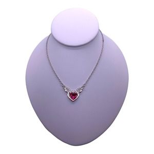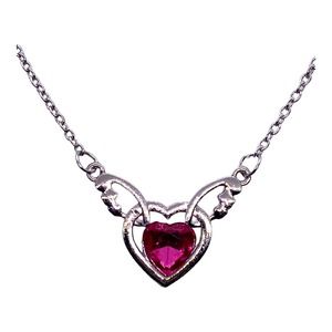Imitation Dark Pink Crystal Rhinestone Gemstone Angel Wings Heart Necklace