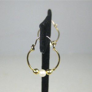 Imitation Pearl Earrings Pierced Women Jewelry Hinged Hoop Dangle Goldtone