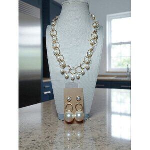 Imitation Pearls Baubble Necklace and Dangle Drop Stud Earrings Statement Set