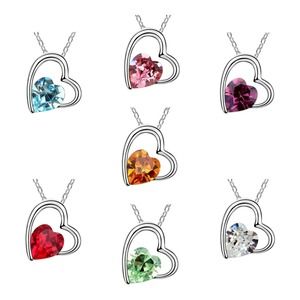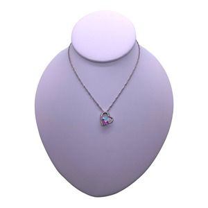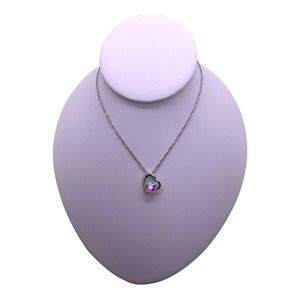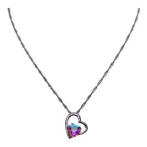 Imitation Silver Iridescent Rhinestone Gemstone Two Hearts In One Necklace