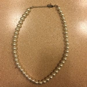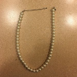Imitation pearl necklace from Target. Measures 9 inches when clasped on last hook . About 15 1/2 inches long when unclasped