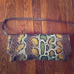 Fun imitation reptile skin clutch! Great worn with neutral colors, strap may be tucked inside the clutch. Barely worn.