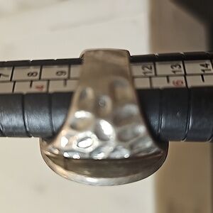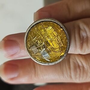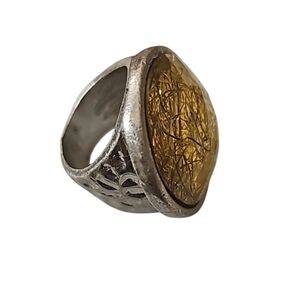 Imitation threaded Agate statement chunky ring in silver tone hammered metal