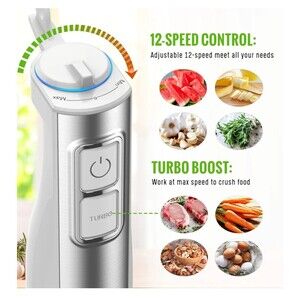Immersion Blender 1100W 5-in-1 12-Speed Hand Stick, White