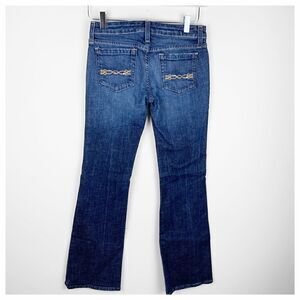 Immortality by Diana Taleshi Women’s Bootcut Jeans w/Crystal Accents Sz 27 EUC. One Crystal missing from top button. Otherwise in barely suede condition. Please see photos for additional details. Waist 30” Rise 7” Inseam 32”