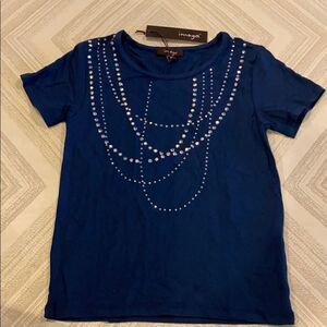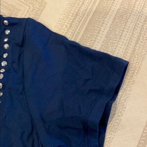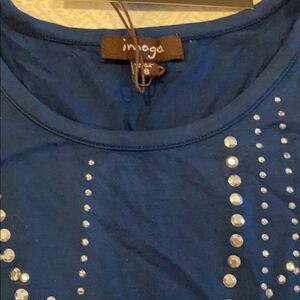Imoga Girls Blue Short Sleeve Shirt with Grommets. Silver grommet design in the front. Made of viscose and spandex.