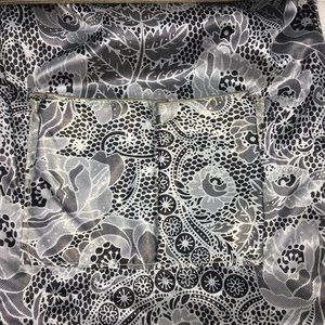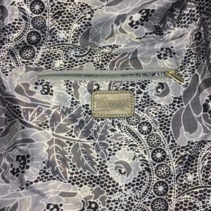 Beautiful Imoshion pewter or silver evening bag with gold geometric detailing. Detachable gold chain crossbody strap gives you multiple carrying options. Foldover flap style clutch with two sections - front slip pocket and very roomy zip pocket extending the full length of the bag. Inside are two slip pockets and a zip pocket for even more organization! Excellent, like new condition.
