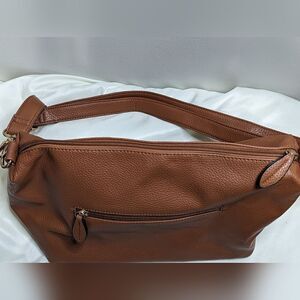 Imoshion luxury vegan crossbody handbag purse. Brown. Adjustable straps. Medium size. No pockets inside. Outside zipper pocket. Good condition.