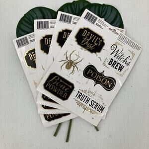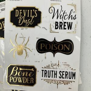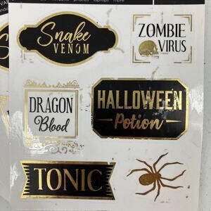 Impact Innovations Black Gold Spider Halloween Bottle Decoration Labels Tonic Zombie Witch Dragon Removable Peel Stick Decal Sticker Home Decor Set