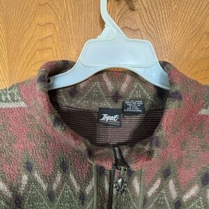 Stylish lightweight jacket with a geometric pattern. Features a half-zip design. Ideal for layering.