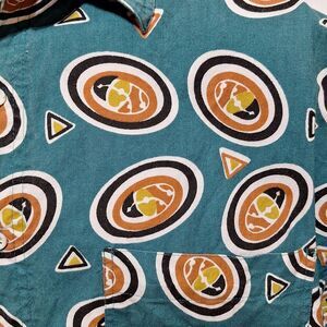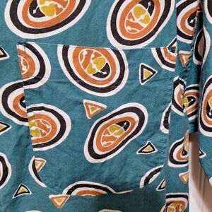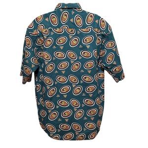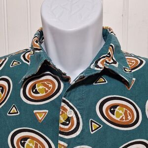 Impact Mens Button Front Oxford Shirt Size M Green Geometric Pocket Funky Cotton