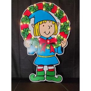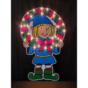 This is a RARE vintage 1993 Impact Plastics lighted yard display. Includes the original box, Elf with wreath sign, string light set, metal stake, and instructions. Please see pictures and feel free to let me know if you have any questions. Don't miss out on this really cool vintage yard display piece.
