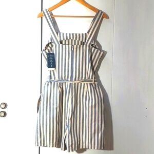 Impact- United by Blue Womens Romper Organic Cotton Blue Stripe Preppy Sz.M
