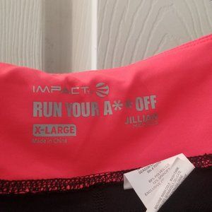 Impact by Jillian Michaels leggings. XL new with tags. Has orange waist band, Has a little pocket on front of waist band. See pictures.Reflective details,stretch fabric, anti chaf, & wicking. exercise pants.